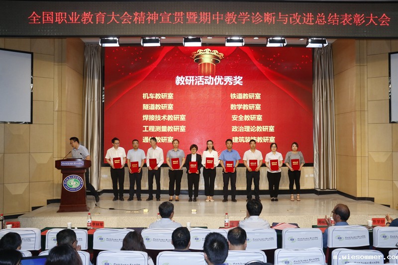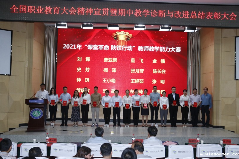郑毅刚副书记宣读了《关于表彰学校2020-2021学年第二学期期中教学诊断与改进优秀项目的决定》、《关于公布2020年校级优秀教材评选结果的通知》、《关于表彰2021年“课堂革命 陕铁行动”教师教学能力比赛获奖的决定》。大会对“教研活动优秀奖”“实践教学优秀奖”“顶岗实习管理优秀奖”“校级优秀教材奖”“教师教学能力大赛”等五个奖项的获奖集体及个人进行了表彰。