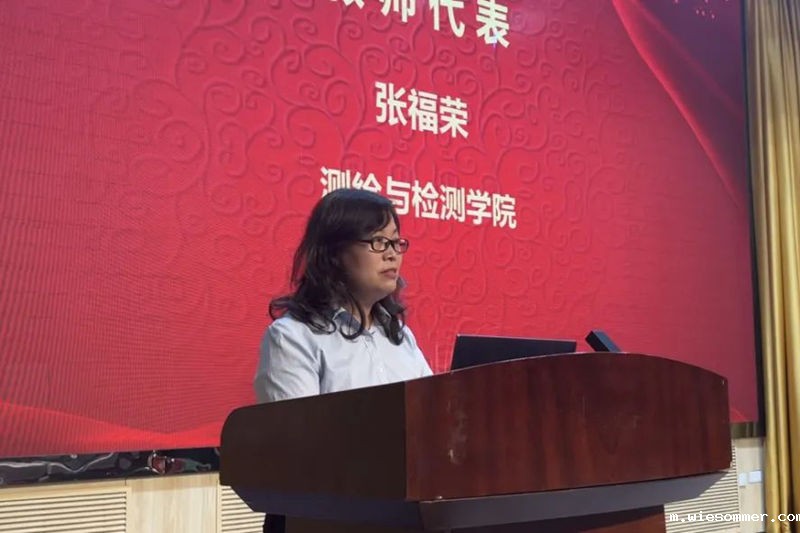 张福荣院长以感谢、奉献、仁爱为关键字进行了发言,她感谢学校、领导、同事、团队及家人的支持与帮助,讲述了测绘工程系在大家奉献下取得的众多荣誉,她强调教师要有仁爱之心,做“四有”好老师,当好学生引路人。张福荣多年来的教育心得和感悟,激励着在场的每一位教职工。
